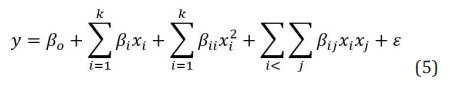 Basado en diseño de experimentos (DOE) y mínimos cuadrados, la respuesta puede escribirse de la siguiente forma: