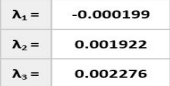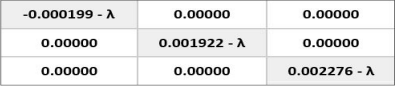 A continuación, se obtiene la determinante de la matriz obtenida anteriormente, la determinante resulta en una ecuación cubica como se presenta en la ecuación (6), al obtener las raíces de esta ecuación es posible obtener los valores de los tres eigenvalores λ